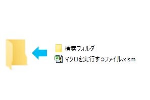 「検索フォルダ」と「マクロを実行するファイル.xlsm」を同じフォルダに保存します。ThisWorkbookで保存場所を自動で取得するのでフォルダ名は自由に付けて差し支えありません。