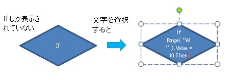 続いて図形を右クリックして「テキストの編集」を選択して「If Range(“A1”).Value = 10 Then」と入力します。