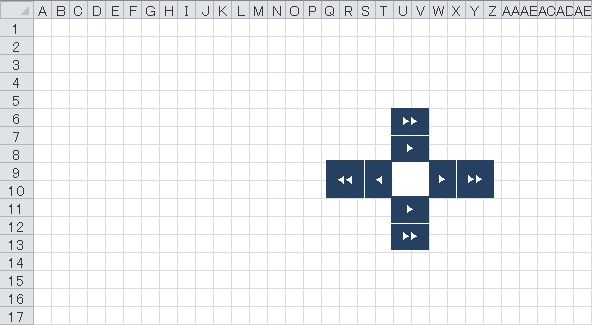 エクセルシートを表示して「挿入」タブ → 「図形」 → 「四角形」の中の「正方形/長方形」を選択してシート上に8つの図形を「移動用ボタン」として配置します。