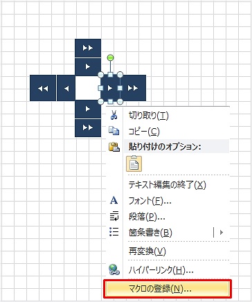 1ピクセル移動用のボタンを右クリックして右クリックメニューから「マクロを登録」を選択します。