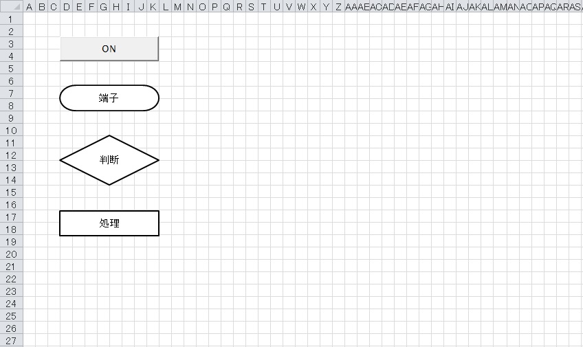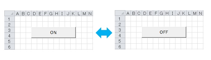 前回は図形をセルの枠線に合わせる設定でボタンでON,OFFの切り替えをできるようにしました。
